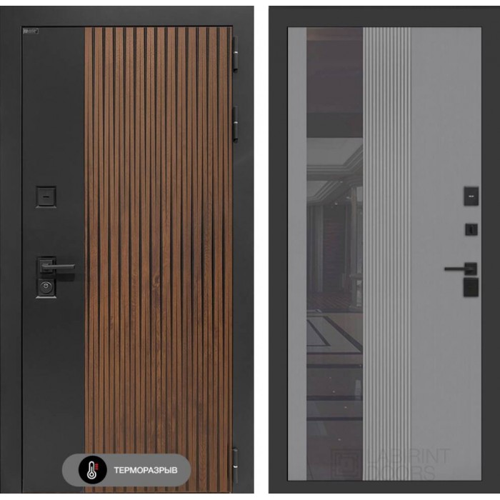 Входная дверь Лабиринт Айслаб с Зеркалом 32 тонированным - Серый рельеф софт