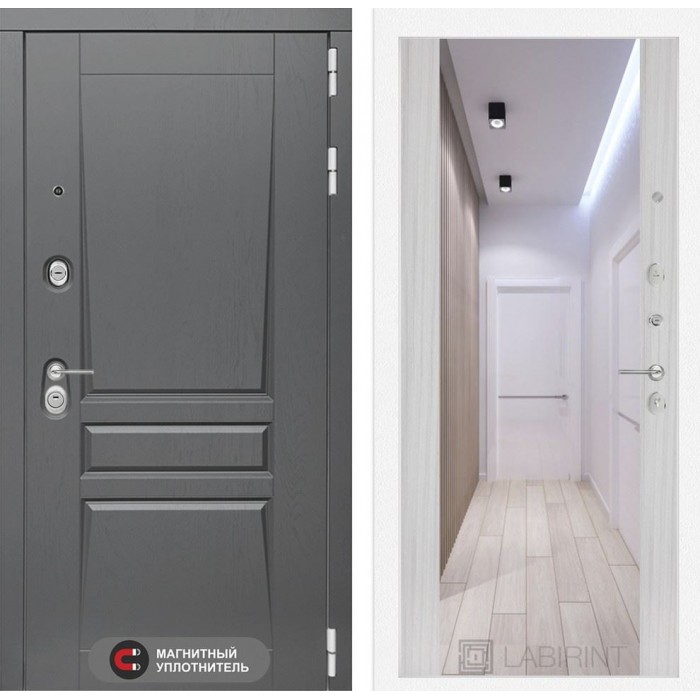 Входная дверь Платинум с Зеркалом Максимум - Сандал белый