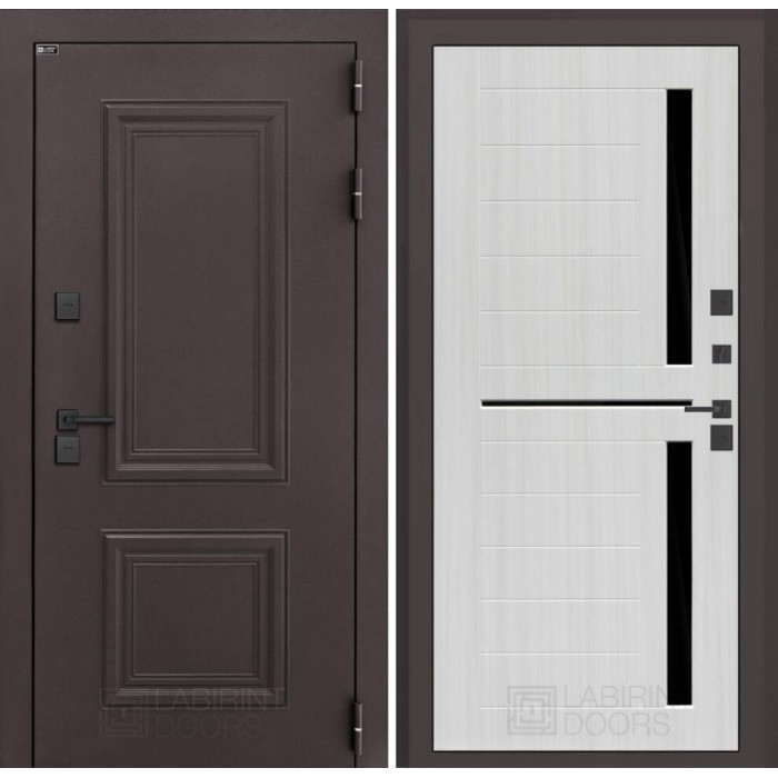 Входная дверь Полярис лайт 02 - Сандал белый, стекло черное
