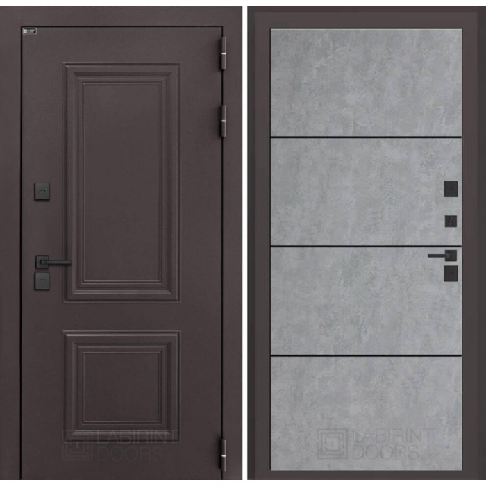 Входная дверь Полярис лайт 25 - Бетон светлый, черный молдинг