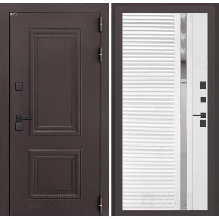 Входная дверь Полярис лайт 31 - Белый софт, зеркальная вставка с тонировкой
