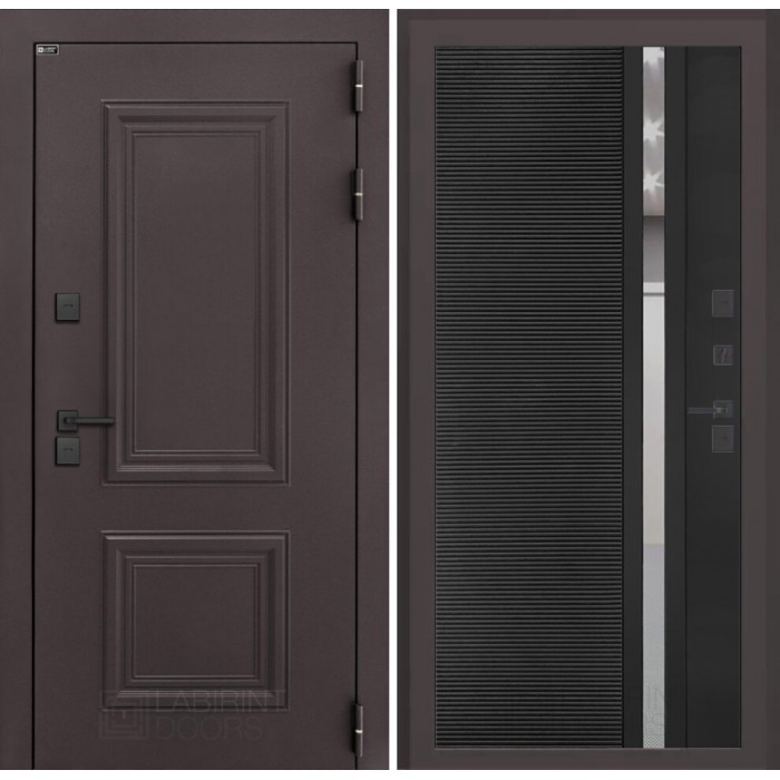 Входная дверь Полярис лайт 31 - Черный кварц, зеркальная вставка с тонировкой
