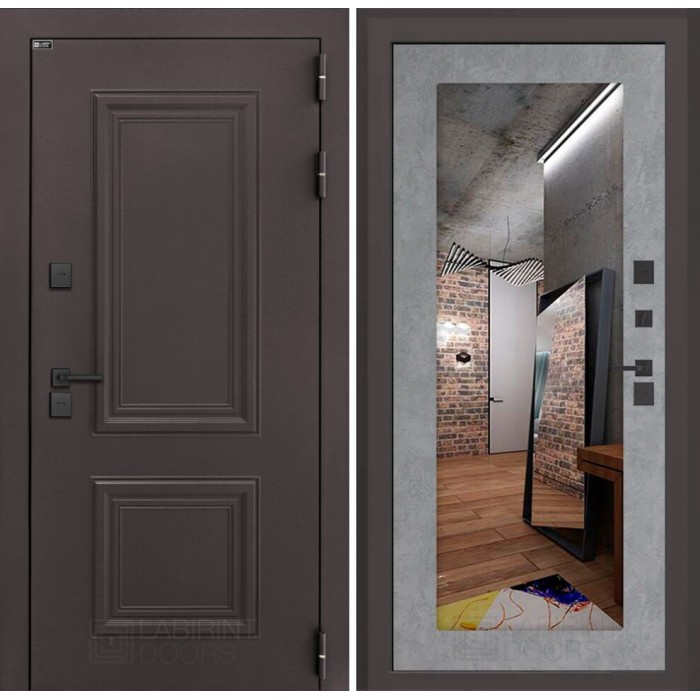 Входная дверь Полярис лайт с зеркалом 18 - Бетон светлый