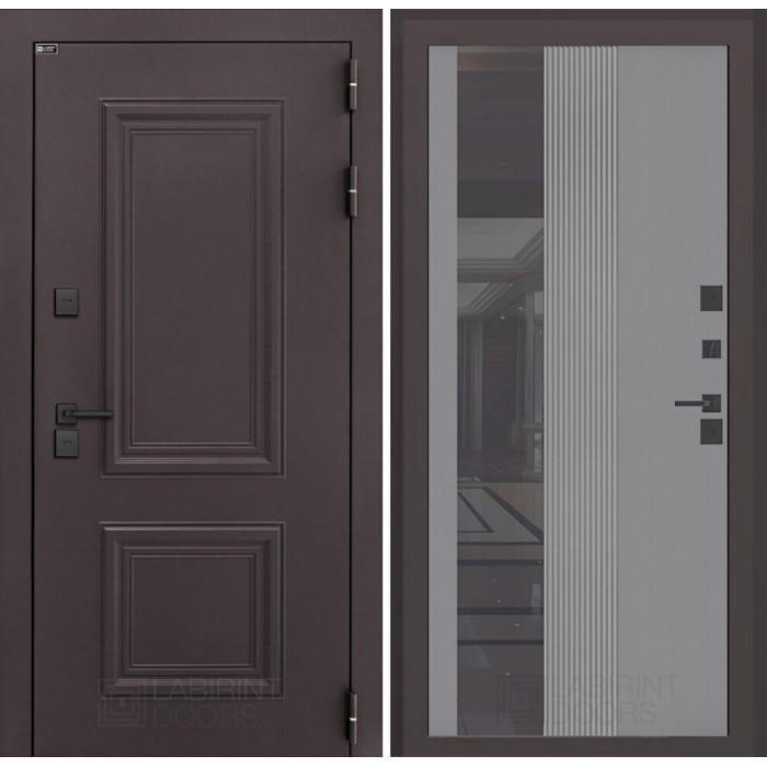 Входная дверь Полярис лайт с зеркалом 32 тонированным - Серый рельеф софт