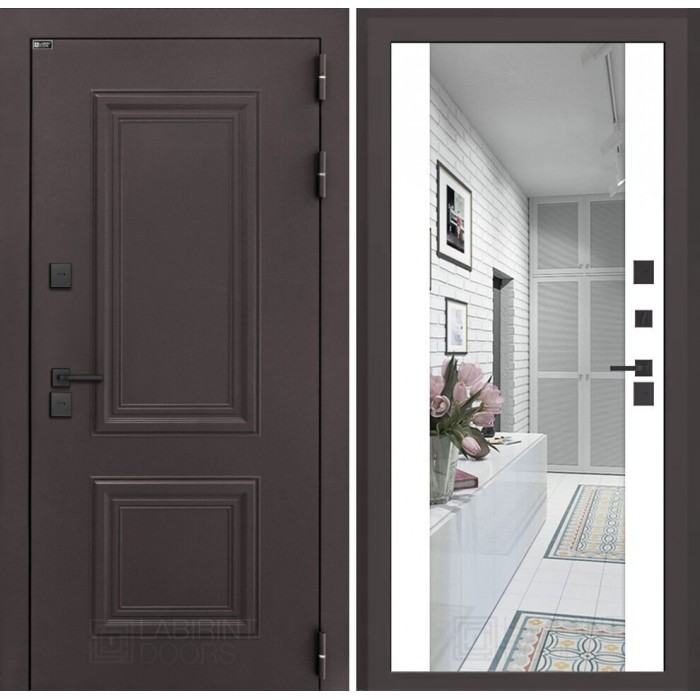 Входная дверь Полярис лайт с зеркалом Максимум - Белый софт