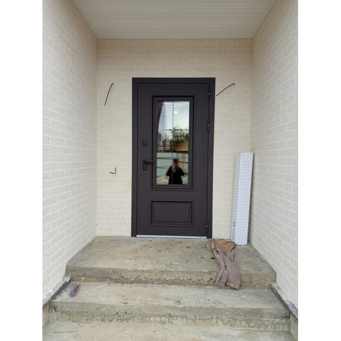 Входная дверь NadomDveri Аляска с окном муар и терморазрывом 8019/ внутри белая матовая