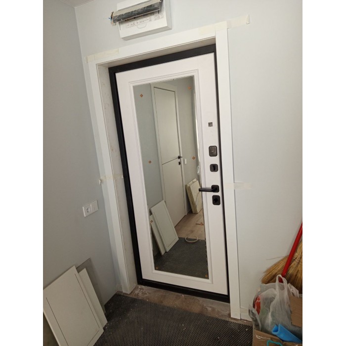 Входная дверь СКАЙЛАБ с Зеркалом Фацет - Белый софт