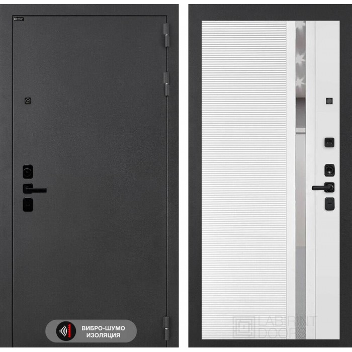 Входная дверь Лабиринт СОНАЛАБ 31 - Белый софт, зеркальная вставка с тонировкой