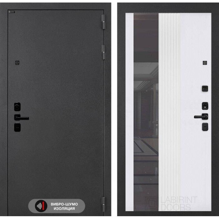 Входная дверь Лабиринт СОНАЛАБ с зеркалом 32 тонированным - Белый рельеф софт