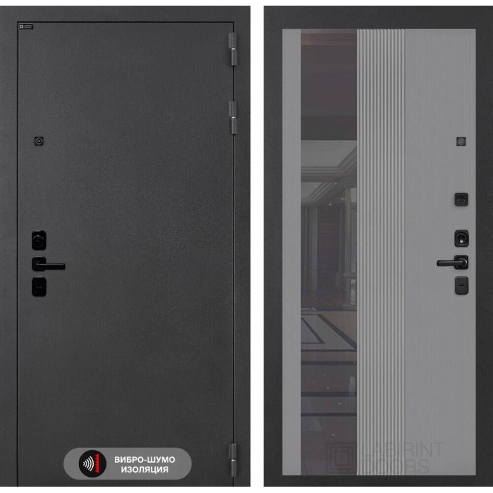 Входная дверь Лабиринт СОНАЛАБ с зеркалом 32 тонированным - Серый рельеф софт