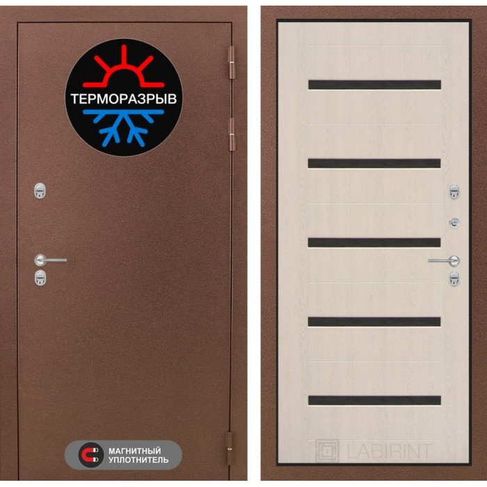 Входная дверь Термо Магнит 01 - Беленый дуб, стекло черное