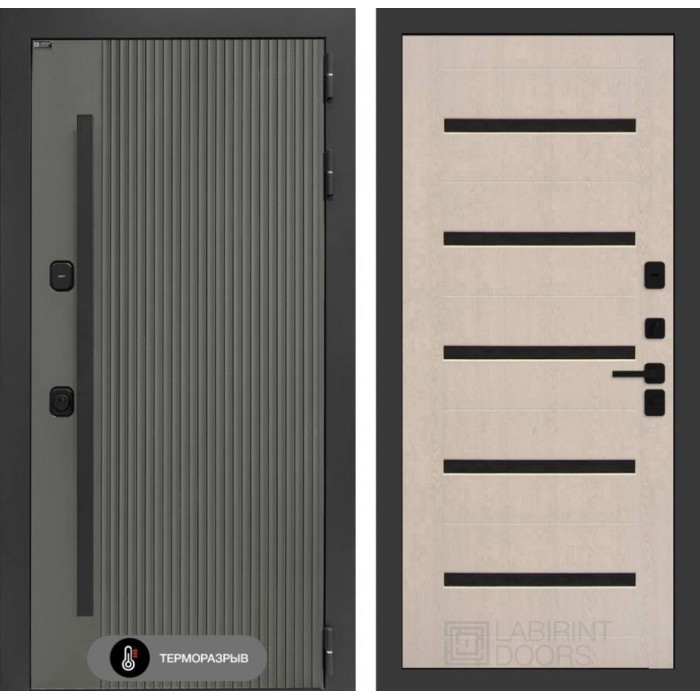 Входная дверь Лабиринт Термолаб 1 тепло 01 - Беленый дуб, стекло черное