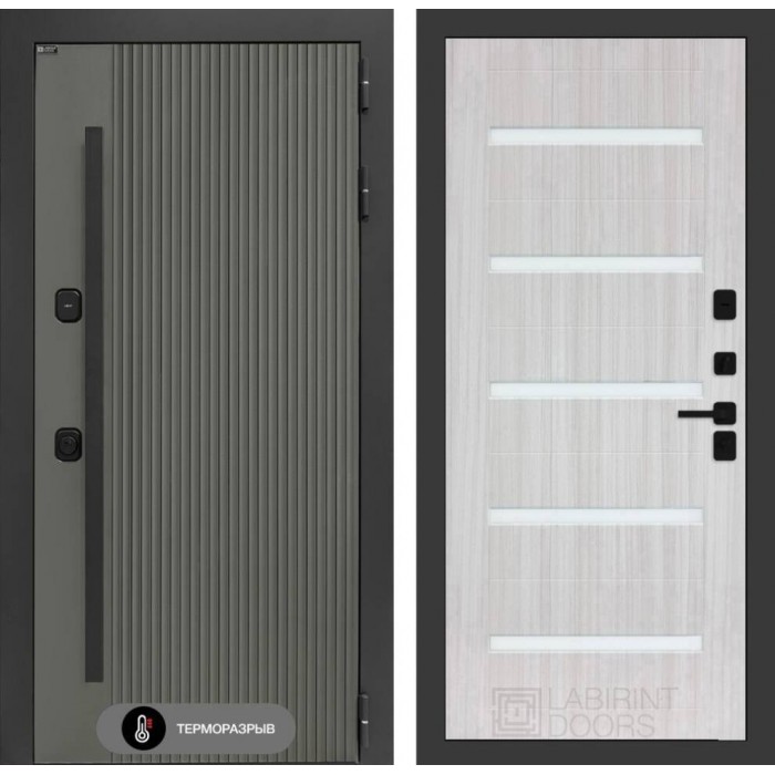 Входная дверь Лабиринт Термолаб 1 тепло 01 - Сандал белый, стекло белое