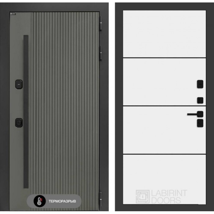 Входная дверь Лабиринт Термолаб 1 тепло 25 - Белый софт, черный молдинг
