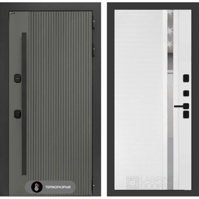 Входная дверь Лабиринт Термолаб 1 тепло 31 - Белый софт, зеркальная вставка с тонировкой