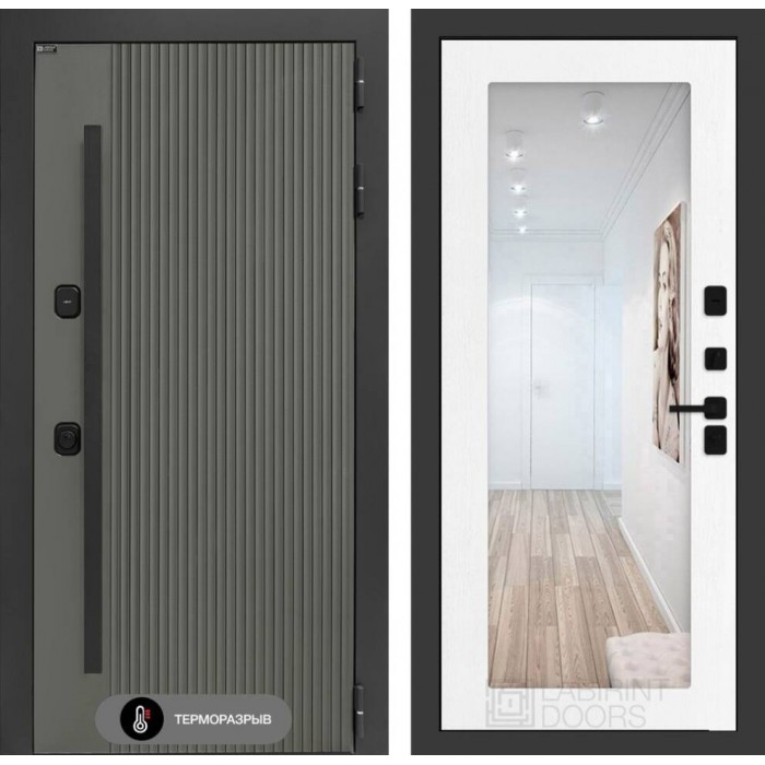 Входная дверь Лабиринт Термолаб 1 тепло с зеркалом 18 - Белое дерево