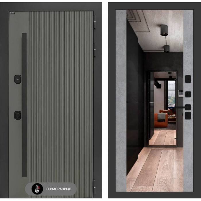 Входная дверь Лабиринт Термолаб 1 тепло с зеркалом Максимум - Бетон светлый