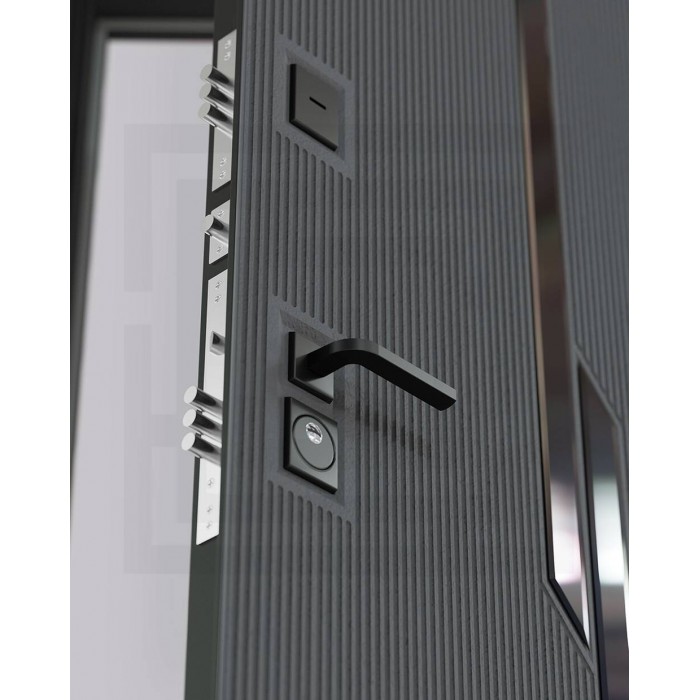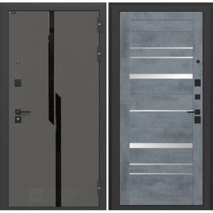 Входная дверь Лабиринт CARBON 20 - Бетон темный, зеркальные вставки