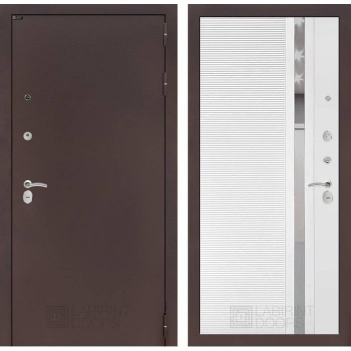 Входная дверь Лабиринт CLASSIC антик медный 31 - Белый софт, зеркальная вставка с тонировкой
