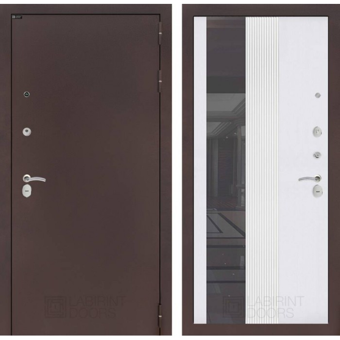 Входная дверь Лабиринт CLASSIC антик медный с Зеркалом 32 тонированным - Белый рельеф софт