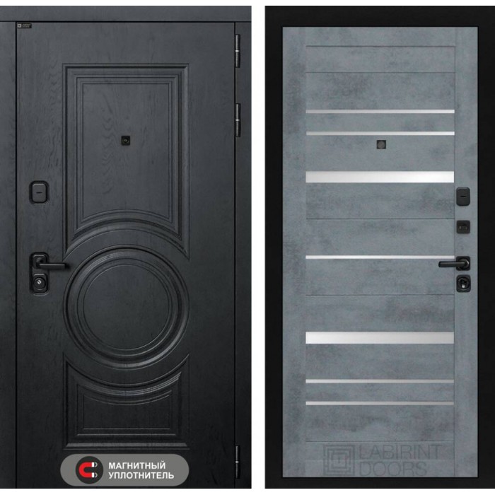 Входная дверь Лабиринт Гранд 20 - Бетон темный, зеркальные вставки