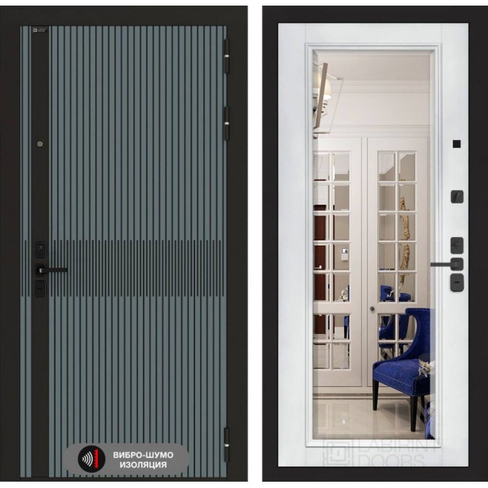 Входная дверь Лабиринт ISSIDA с Зеркалом Фацет - Белый софт 960х2050 правая