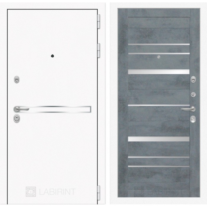 Входная дверь Лабиринт Лайн WHITE 20 - Бетон темный, зеркальные вставки