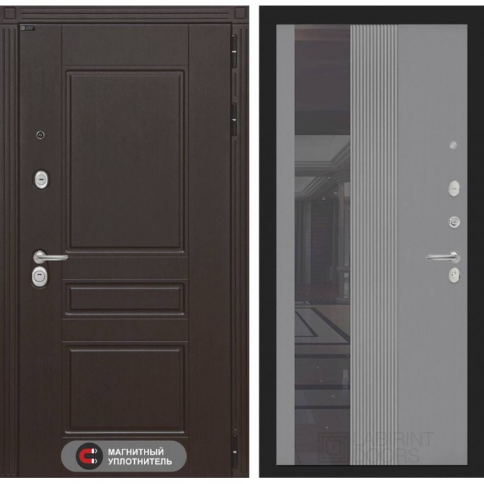 Входная дверь Лабиринт Мегаполис с Зеркалом 32 тонированным - Серый рельеф софт