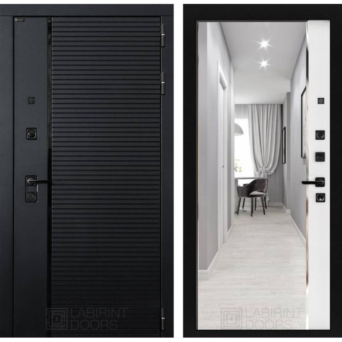 Входная дверь Лабиринт Пиано с зеркалом Панорама - Белый софт 880х2050 правая