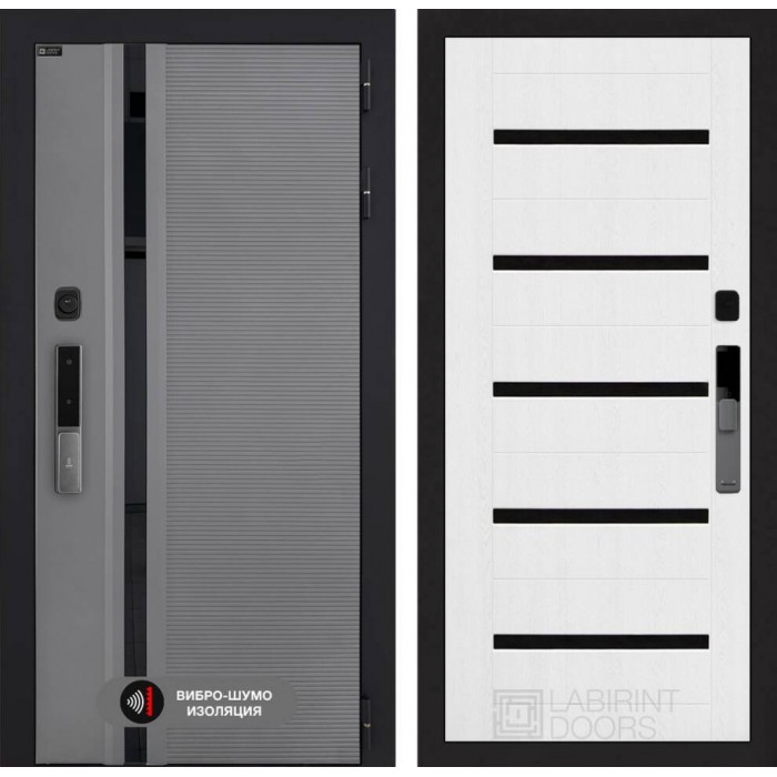 Входная дверь Лабиринт Пиано Смарт 2.0 панель 01 - Белое дерево, стекло черное
