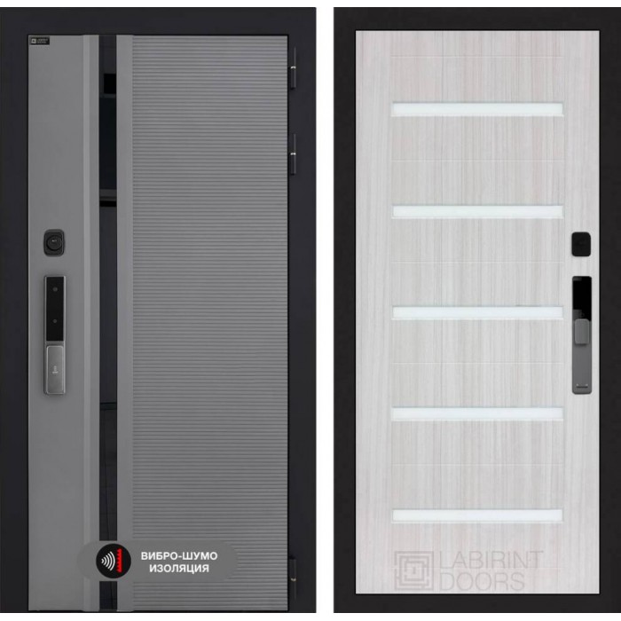 Входная дверь Лабиринт Пиано Смарт 2.0 панель 01 - Сандал белый, стекло белое