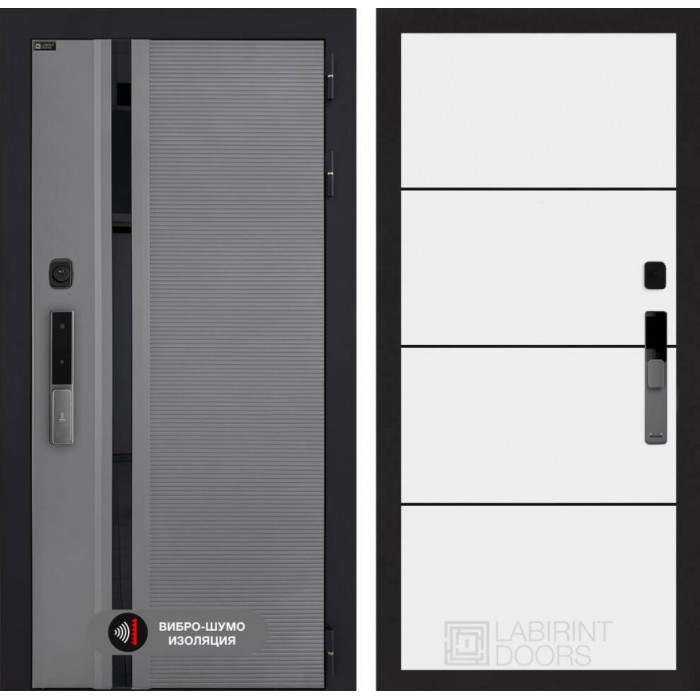 Входная дверь Лабиринт Пиано Смарт 2.0 панель 25 - Белый софт, черный молдинг