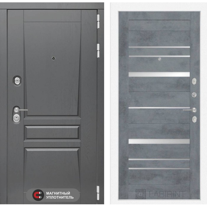 Входная дверь Лабиринт Платинум 20 - Бетон темный, зеркальные вставки