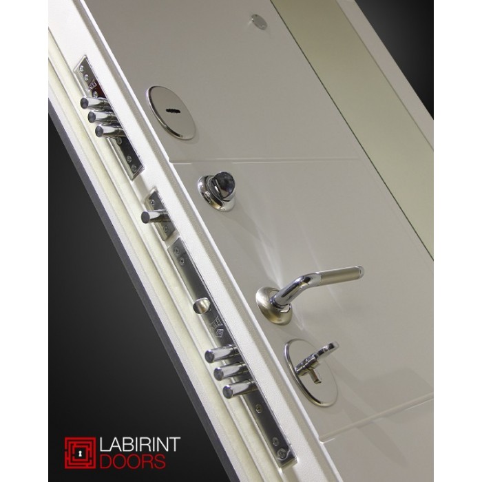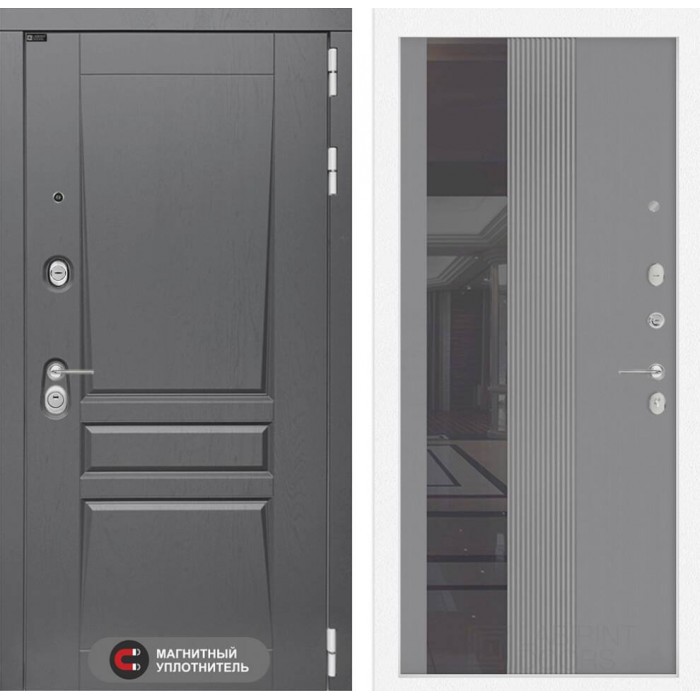 Входная дверь Лабиринт Платинум с Зеркалом 32 тонированным - Серый рельеф софт 960х2050 левая