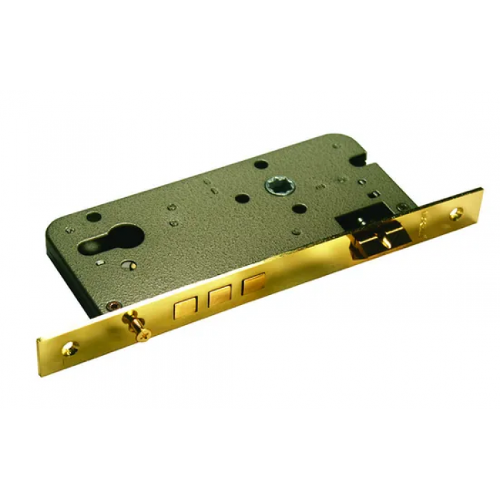 Замок межкомнатный L03 PG под цилиндр с тремя ригелями, цвет золото