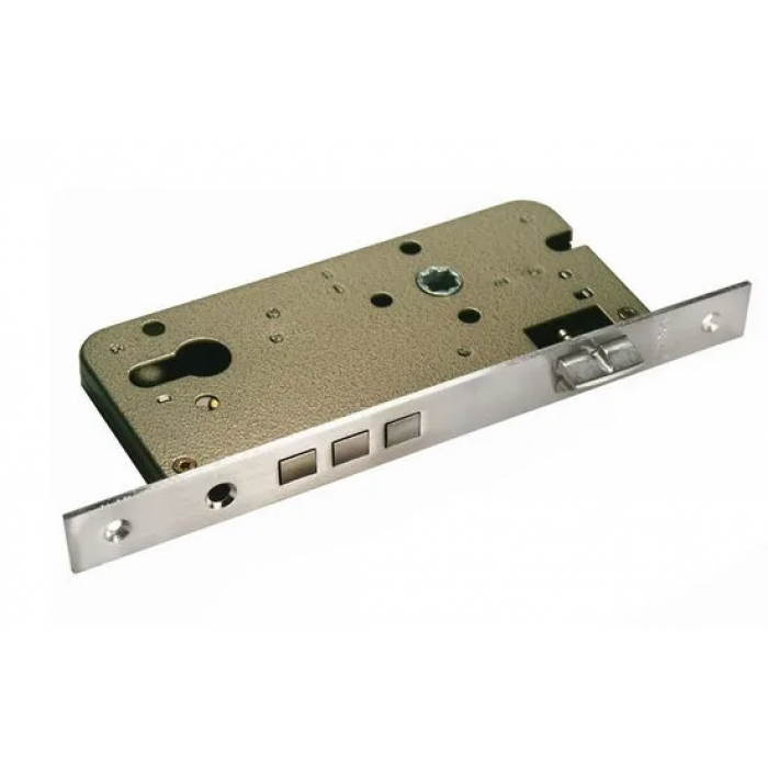 Замок межкомнатный L03 SN под цилиндр с тремя ригелями, цвет никель матовый
