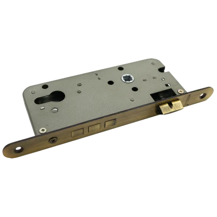 Замок межкомнатный OL03 AB под цилиндр с тремя ригелями, цвет античная бронза