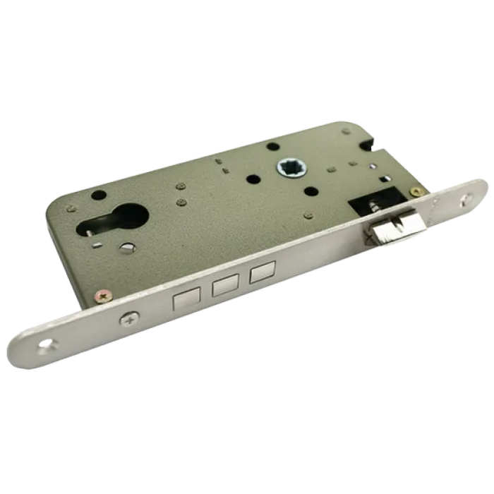 Замок межкомнатный OL03 SN под цилиндр с тремя ригелями, цвет никель матовый